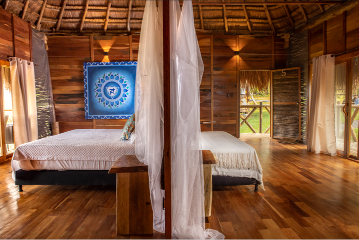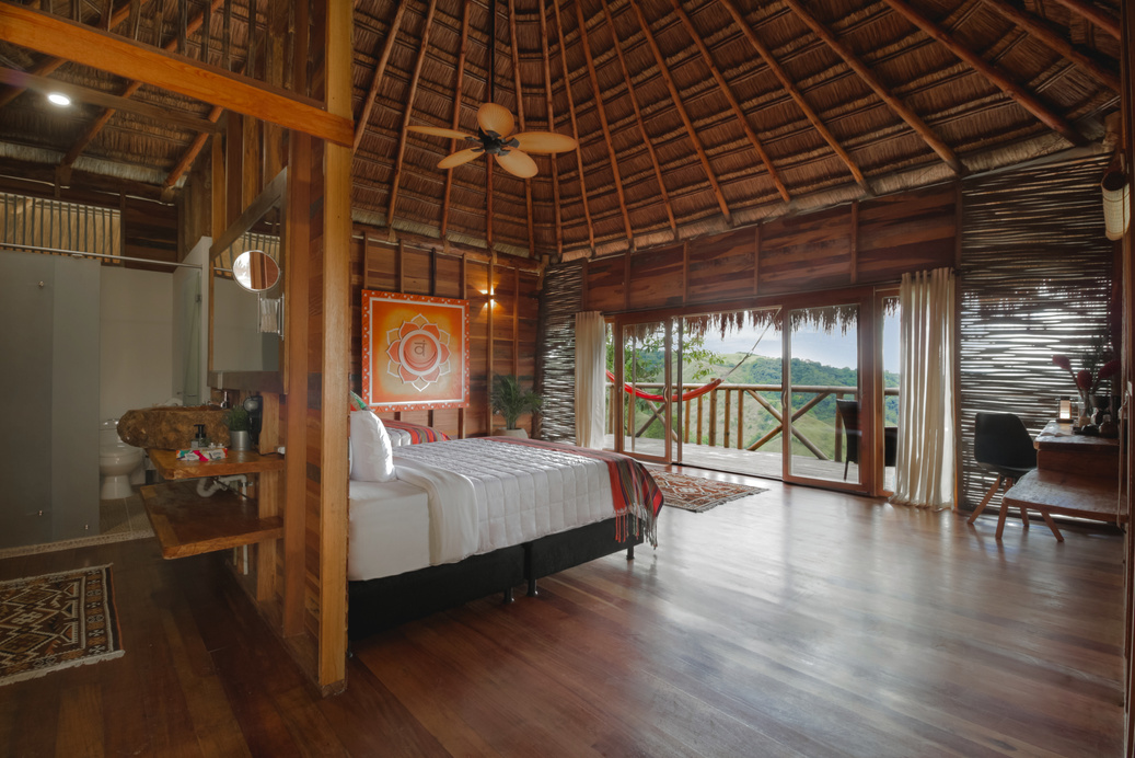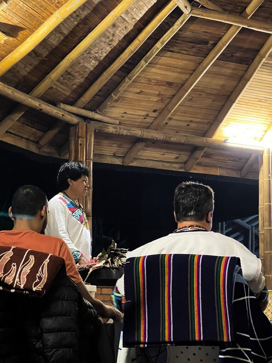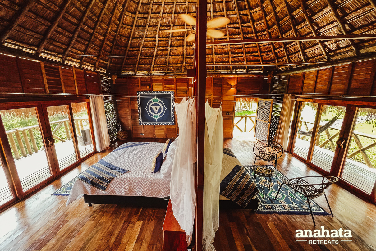 El escenario, una maloca, es una cabaña de diseño tradicional, venerada como un espacio sagrado, que proporciona un ambiente auténtico y sereno para la ceremonia.